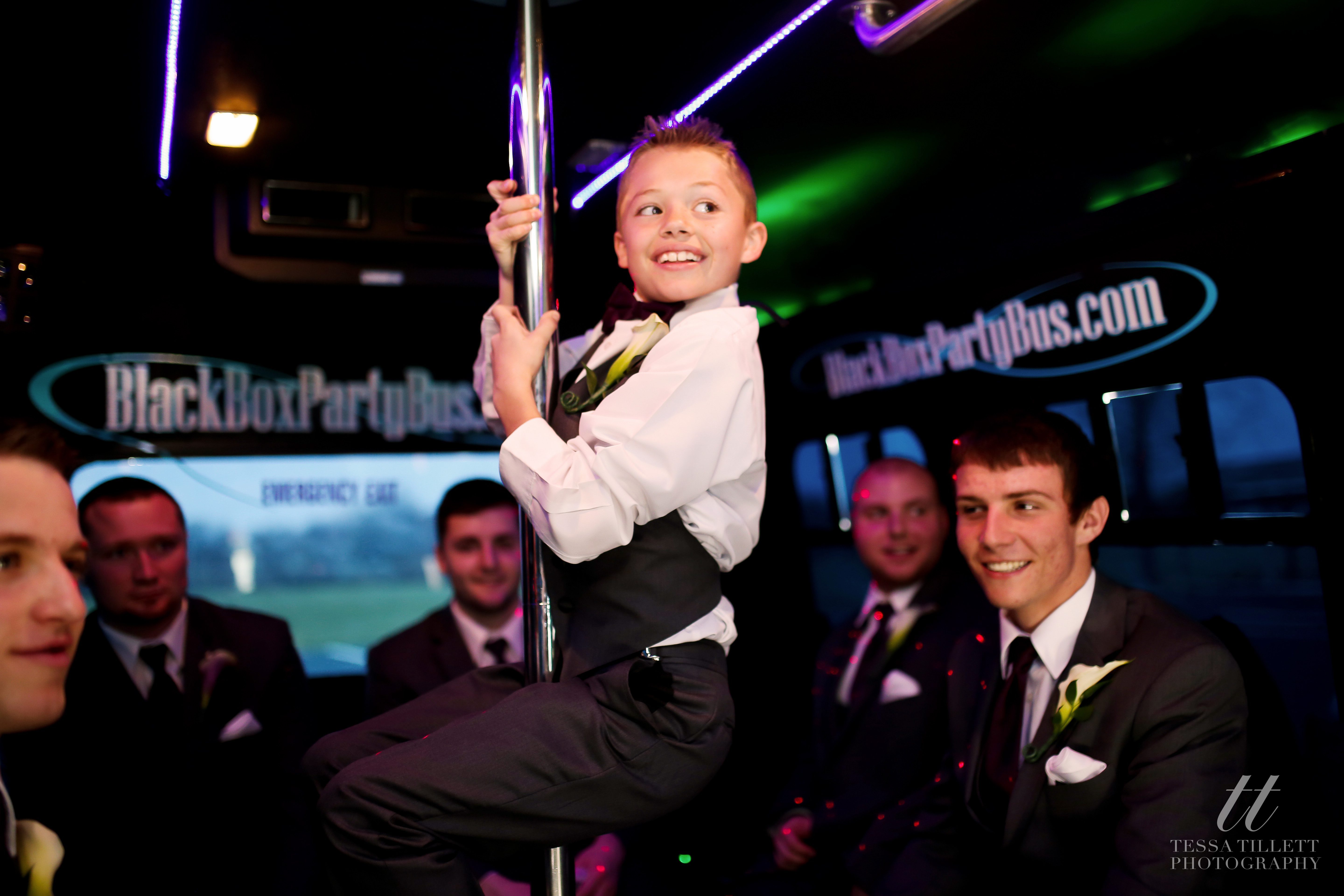 It was the boy’s turn first to head to the reception location for groomsmen photos. This party bus had a built-in photo booth- pretty awesome. For as many weddings as I’ve been to, I’ve never seen one of those!