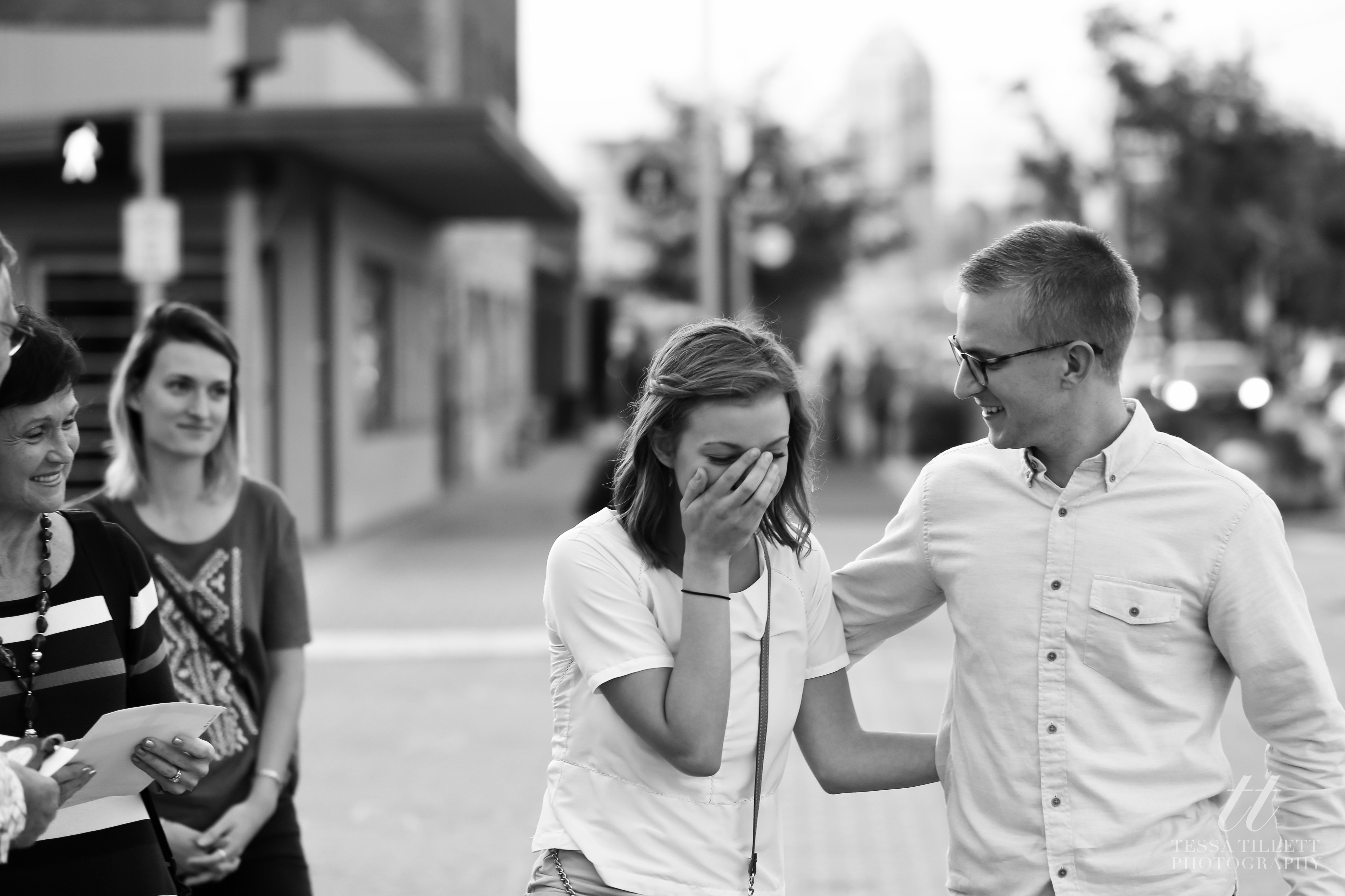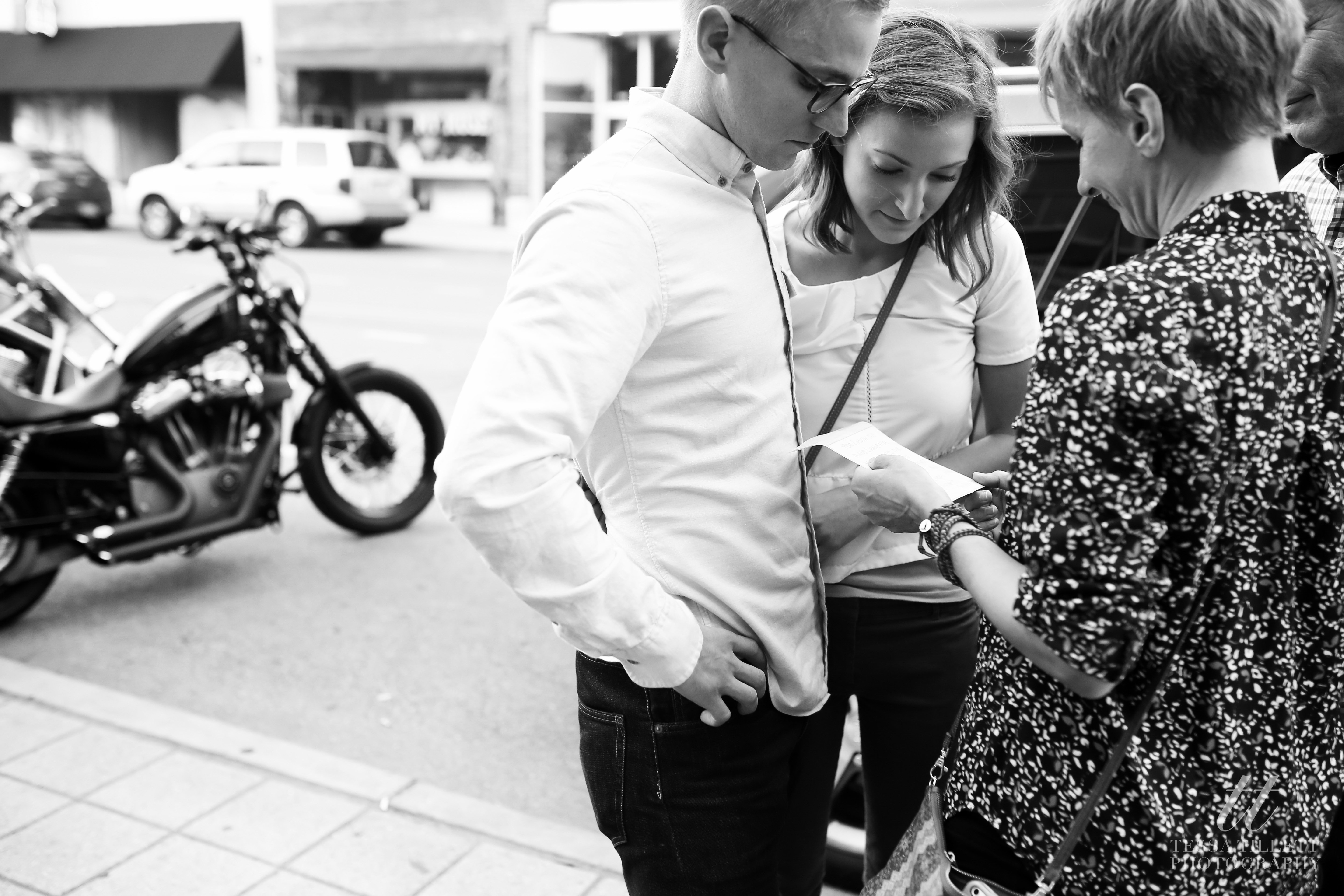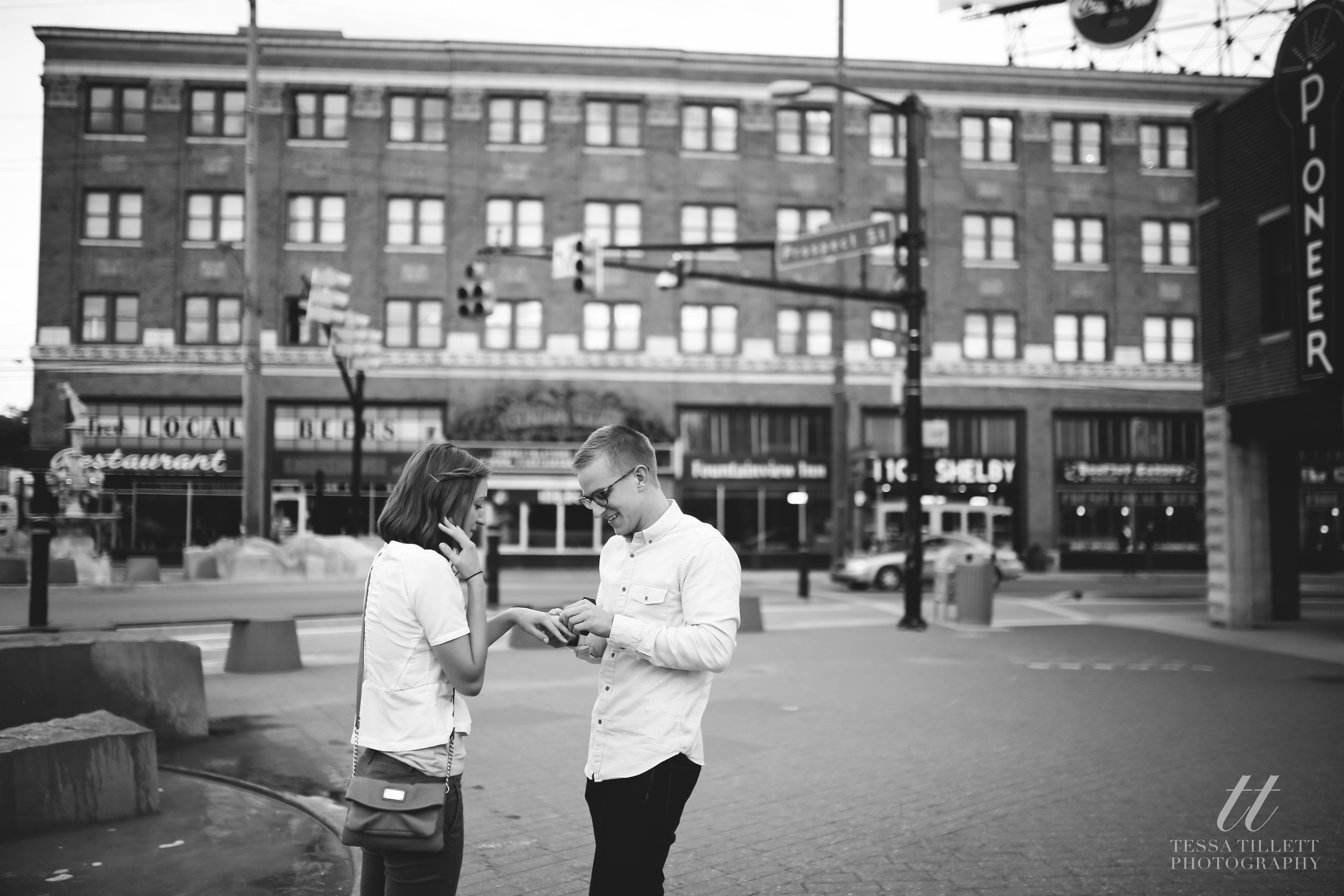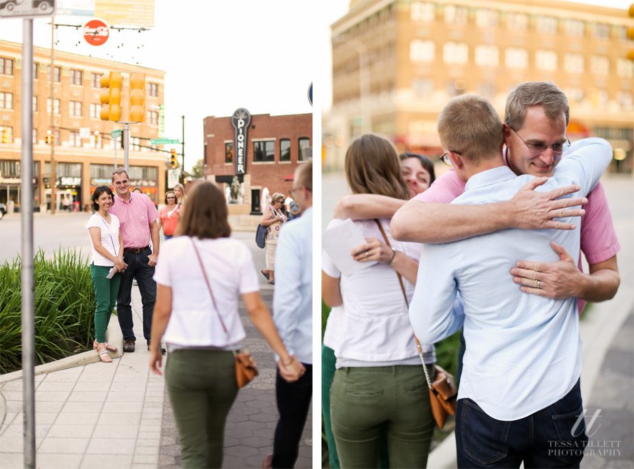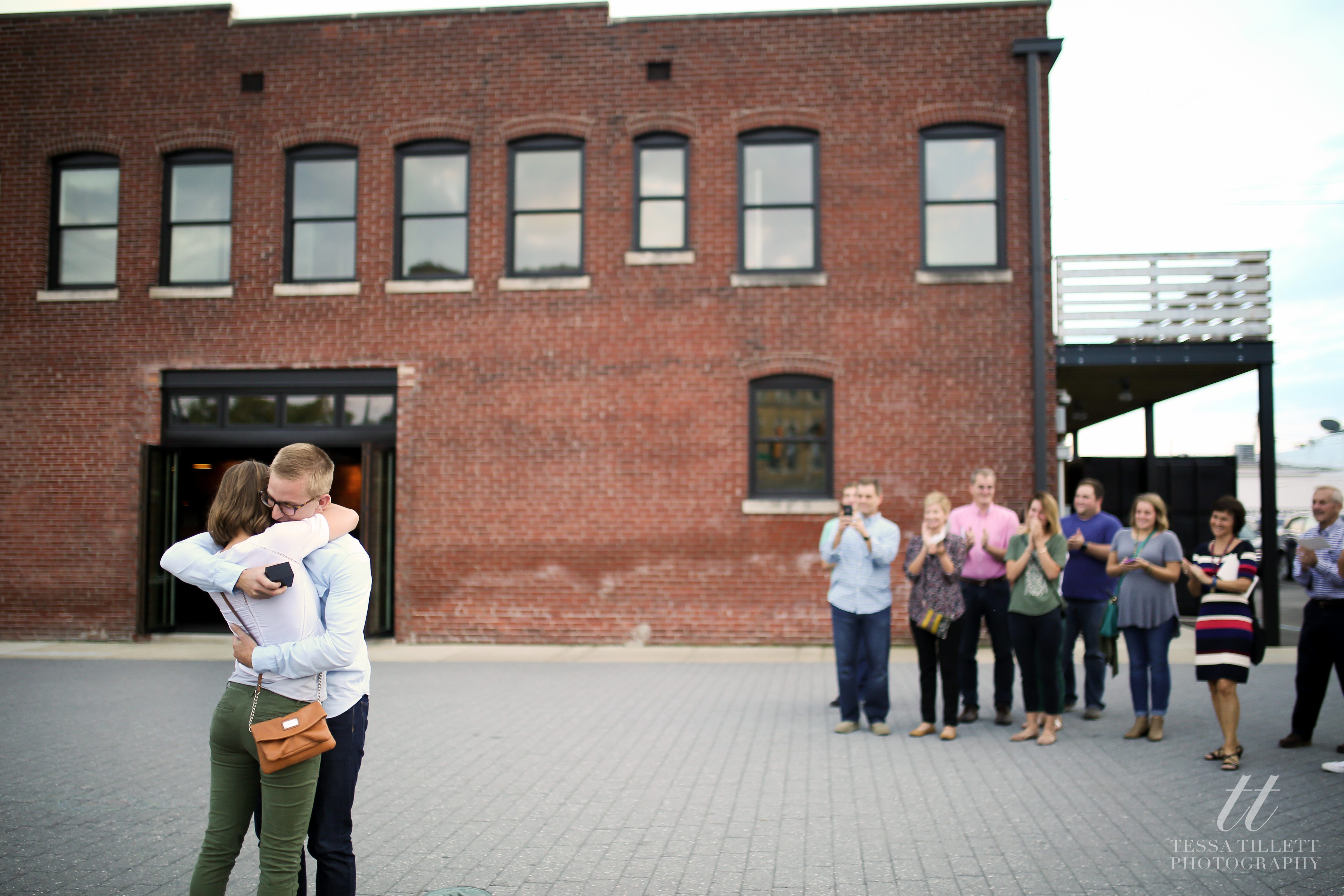 Jake had his plan more than a month before his proposal to Hannah. He spoke with me about documenting the proposal back in September when he was proposing in October. His plan was to walk from her apartment to a restaurant in Fountain Square, where his and her family and friends would line up down Virginia Ave., stopping them both along the way to pray over and bless their relationship. When he arrived at the fountain at the end of the street, he would propose.